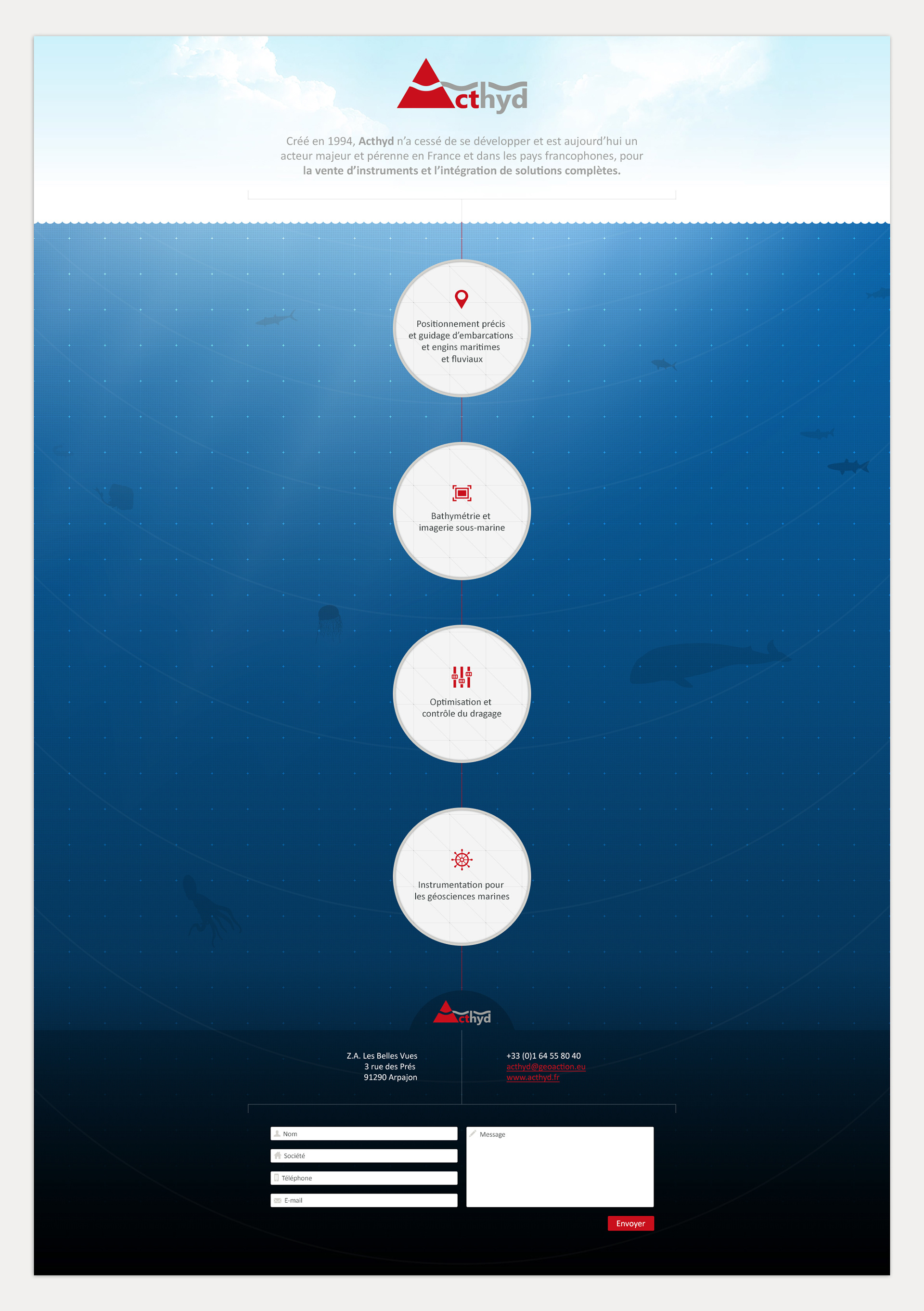 Projet de page d’accueil pour le site de la société Acthyd, Expert en géophysique marine.