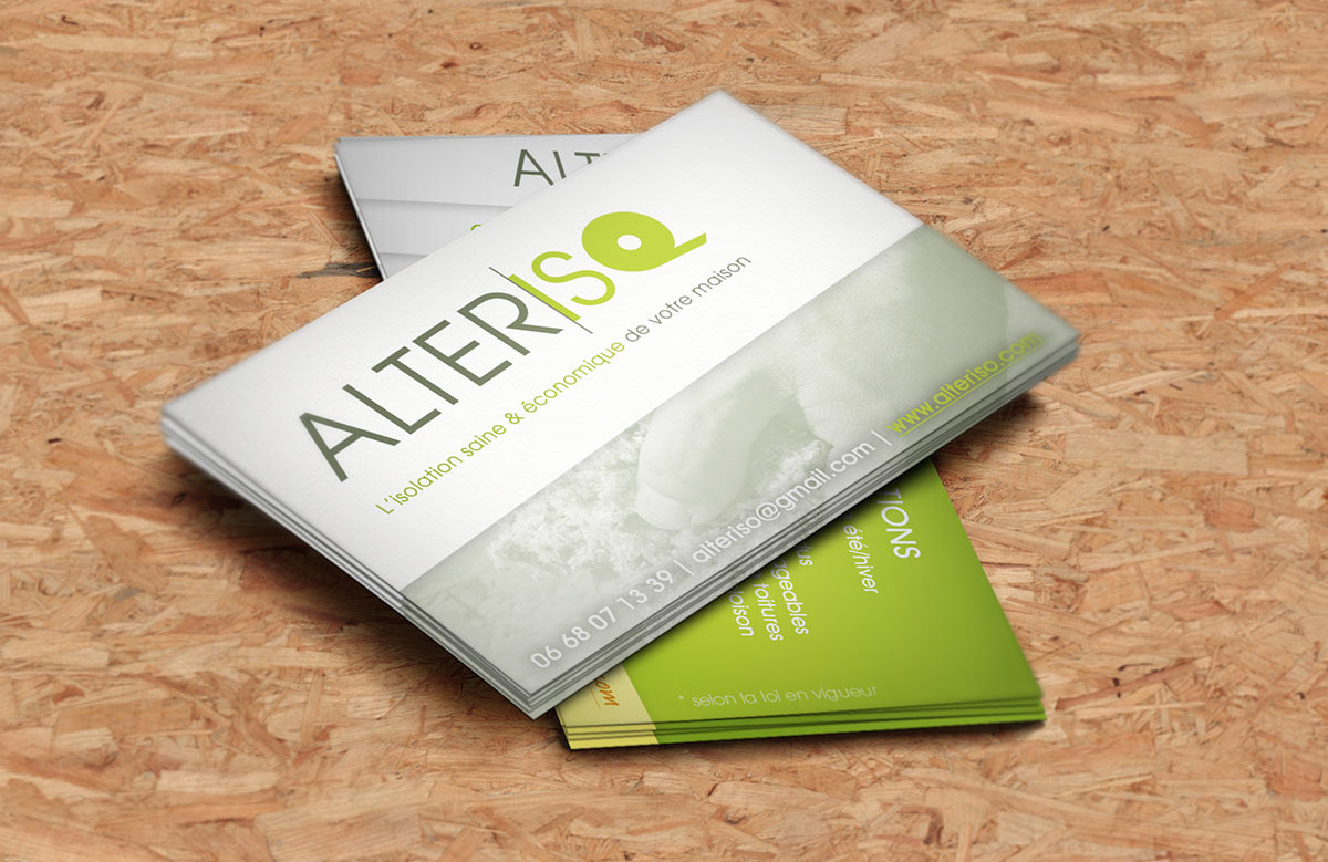 Création de l’identité visuelle, de la communication papier et du site Internet d’Alteriso, entreprise spécialisée dans l’isolation écologique.