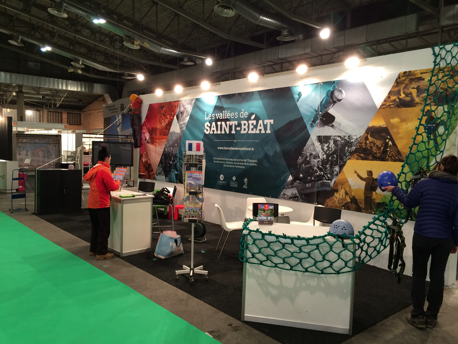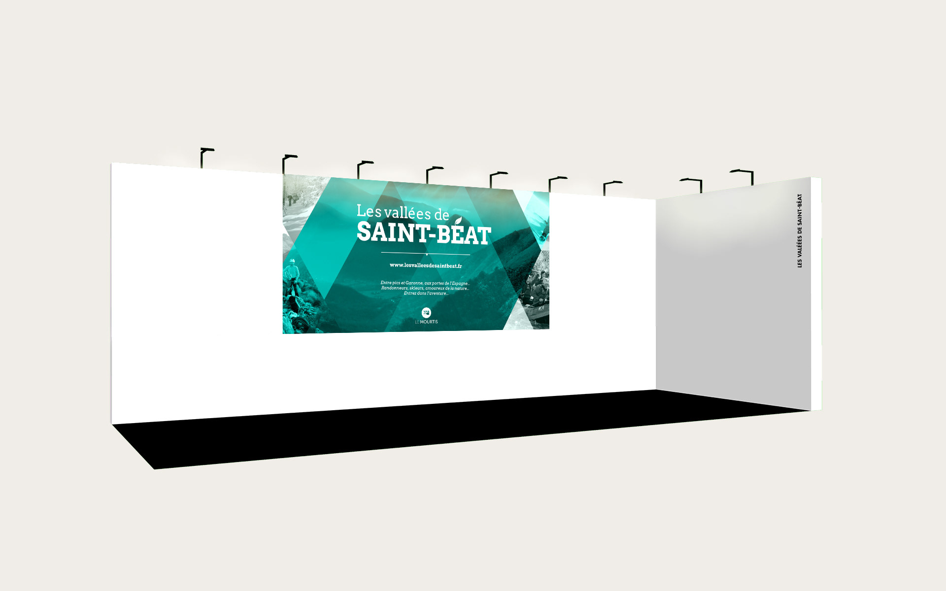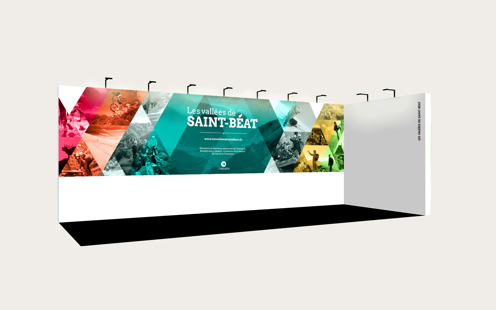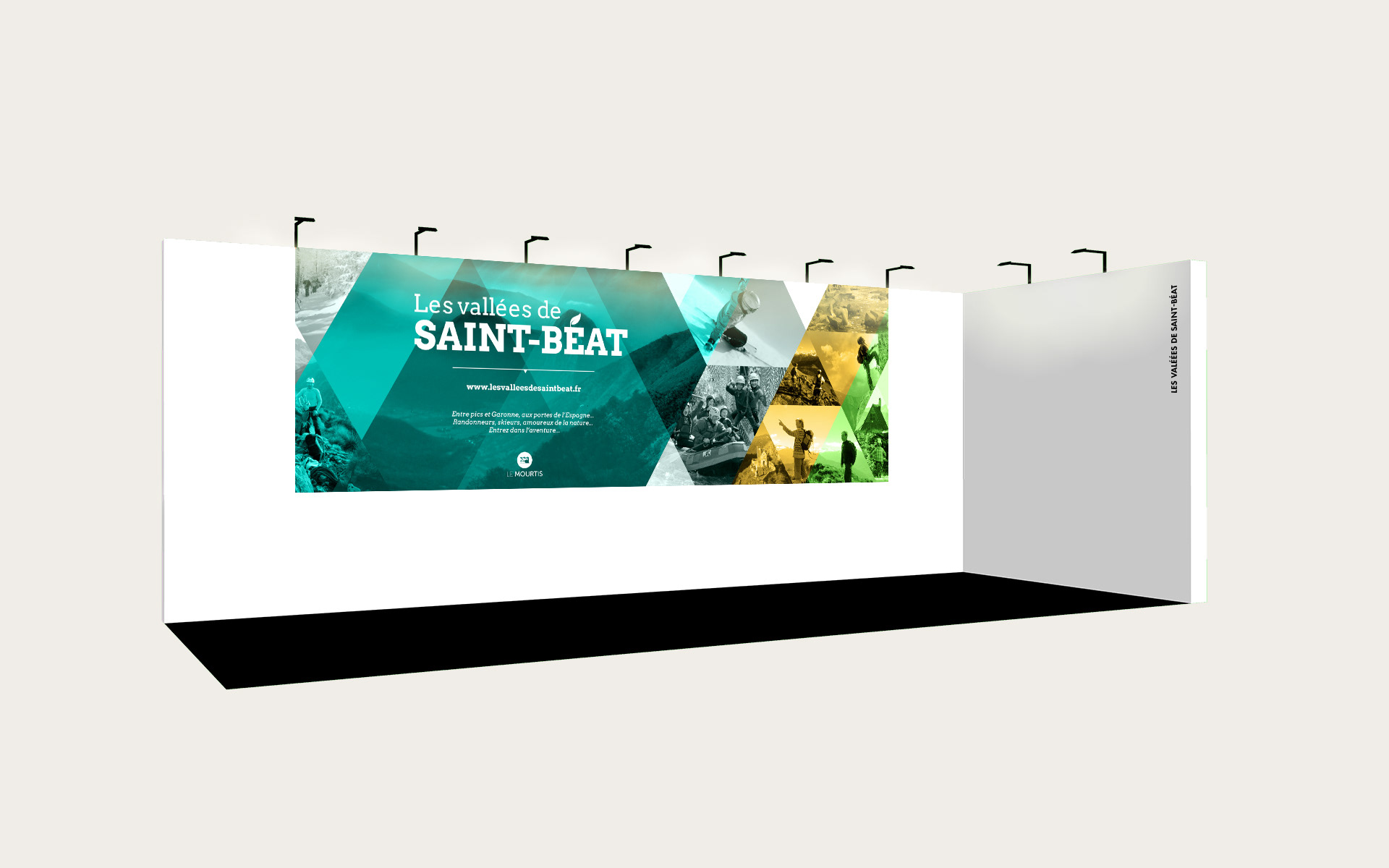 Création d'un visuel de 8 x 2 m modulable pour le stand de l'Office de tourisme des vallées de Saint-Béat.