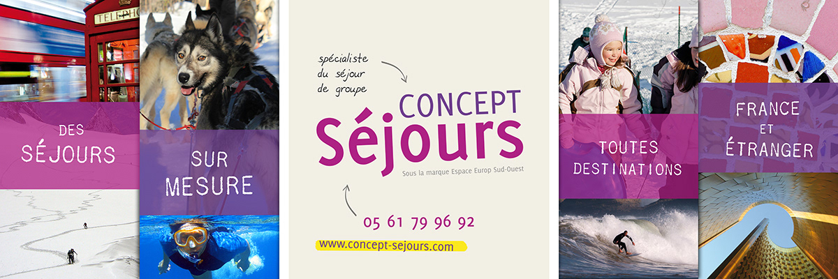 Création de l'identité graphique et de la communication de l'agence de voyage Concept Séjours.