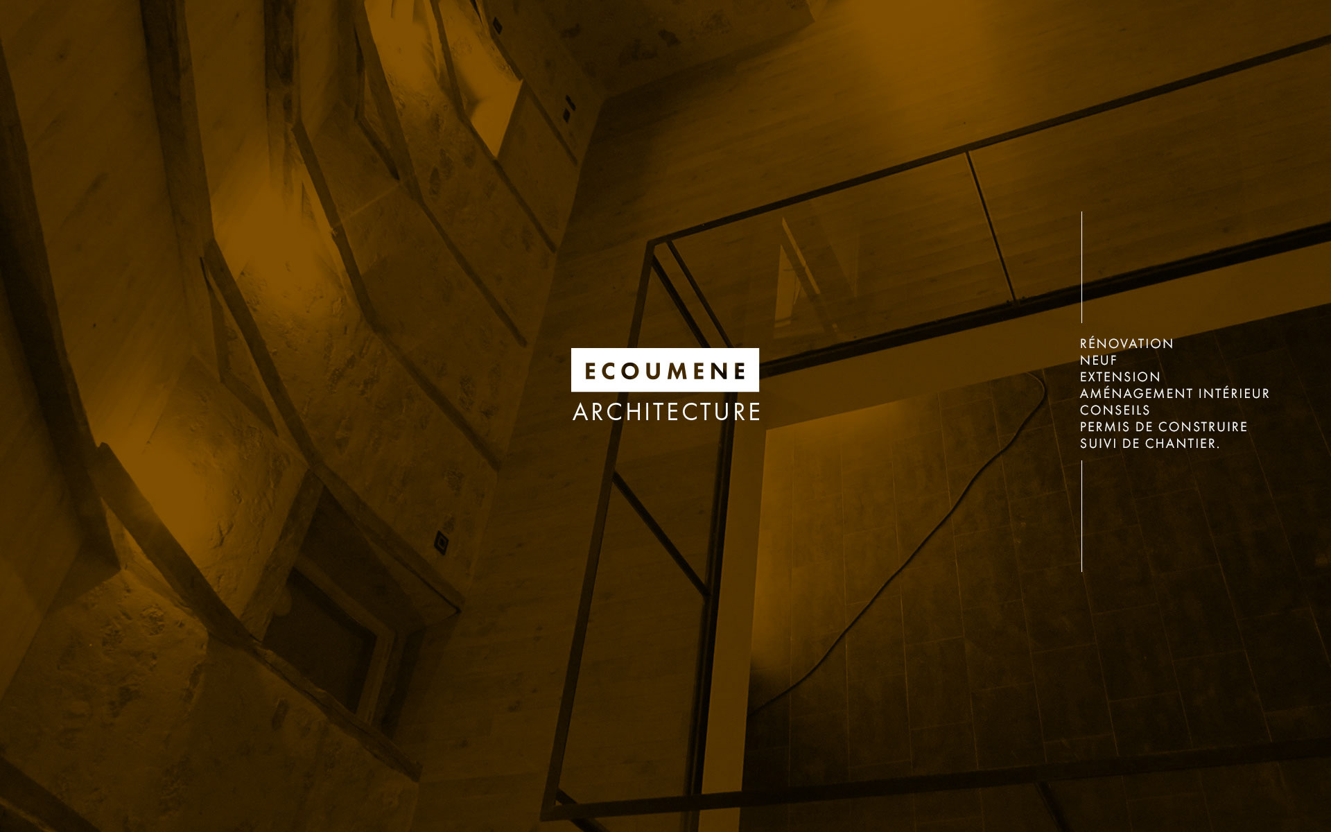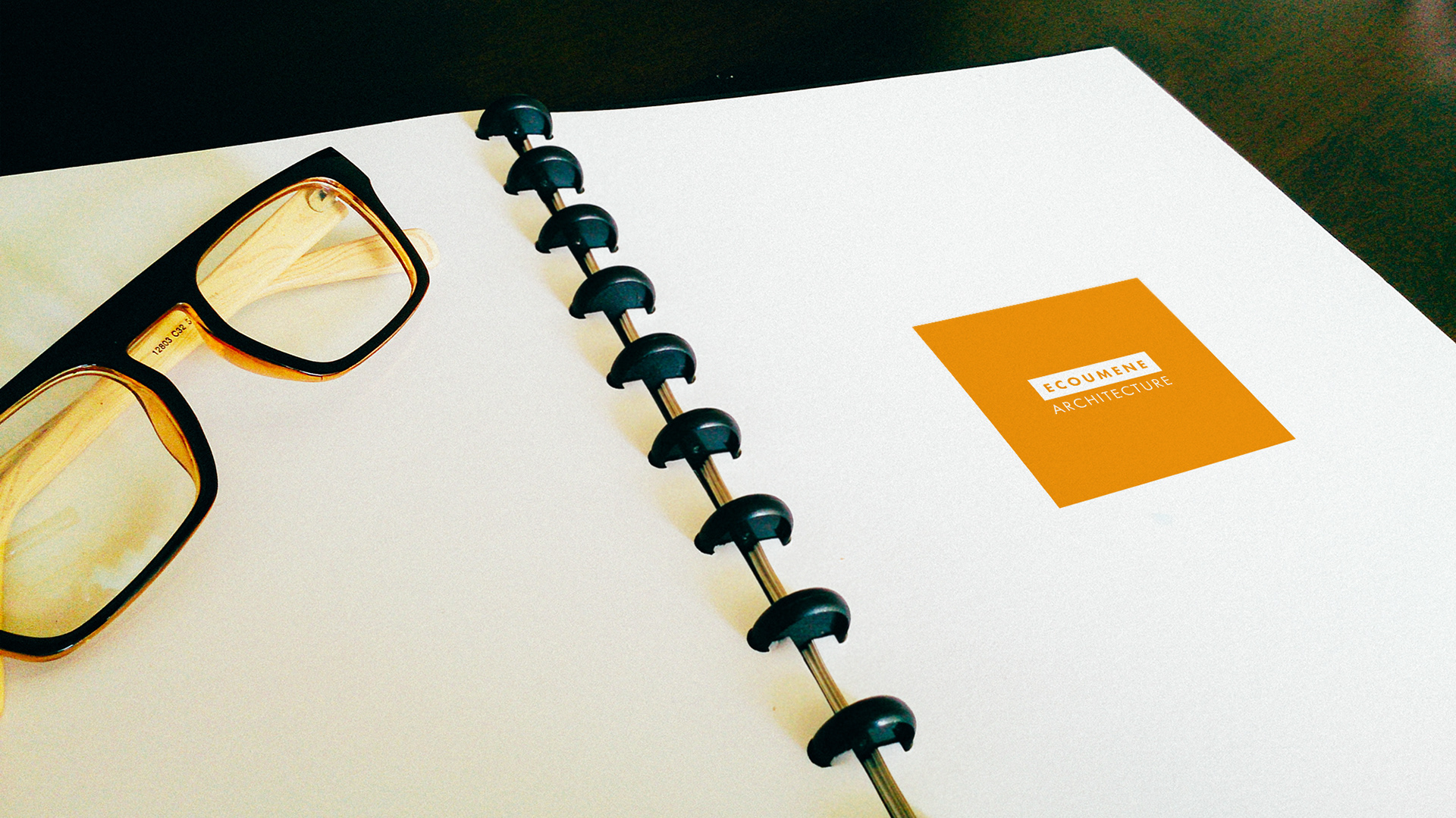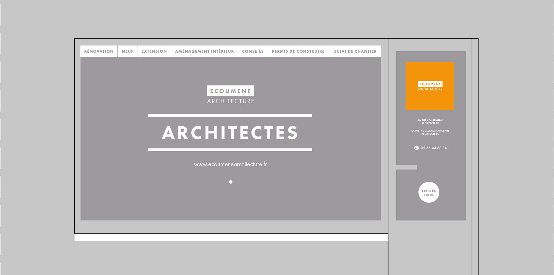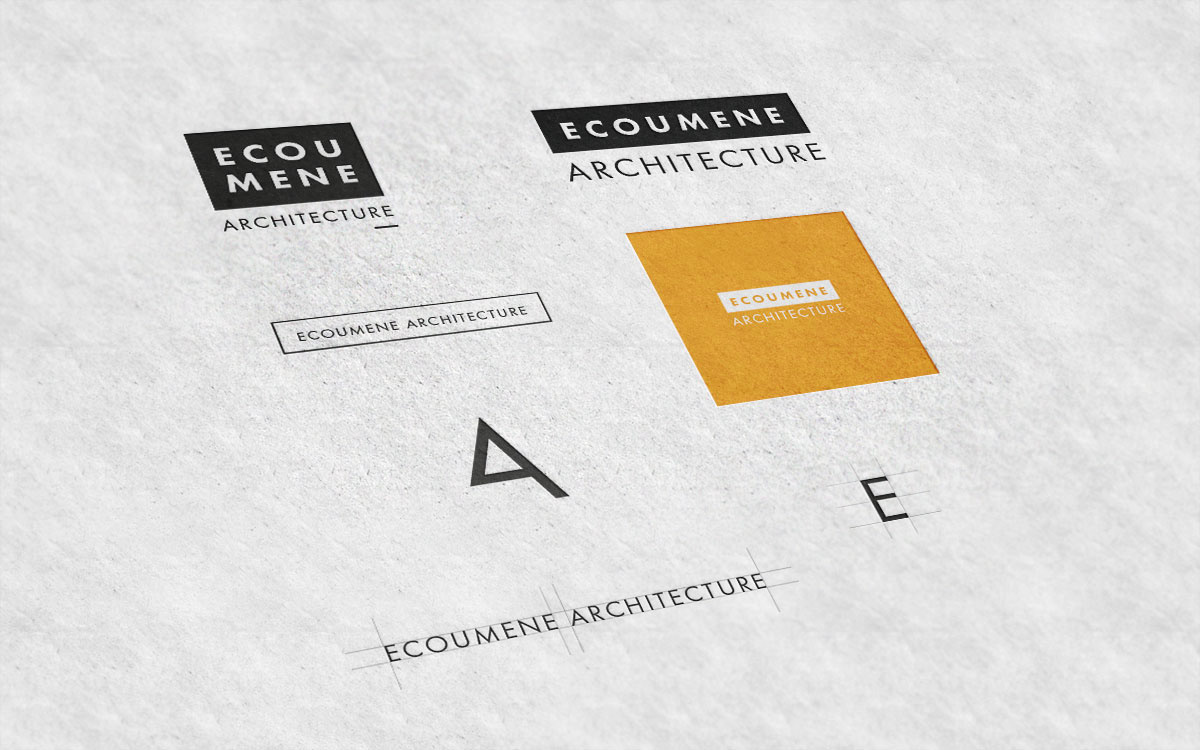 Création de l'identité visuelle, de la signalétique et du site Internet d'Ecoumene Architecture