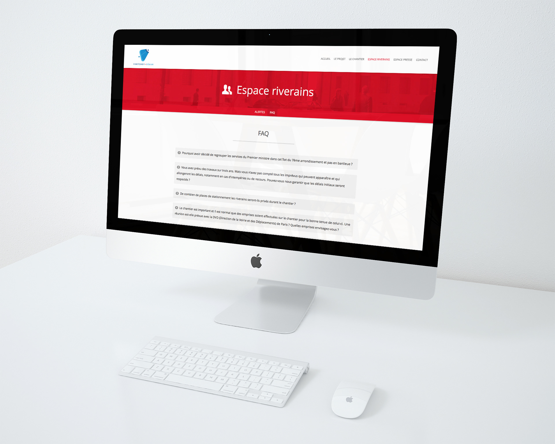 Création du site info-fontenoysegur.fr pour l'agence de communication M-Créa. Site d'information sur la restructuration de l'ensemble immobilier Fontenoy-Ségur devant accueillir les futurs locaux des services administratifs du premier ministre.