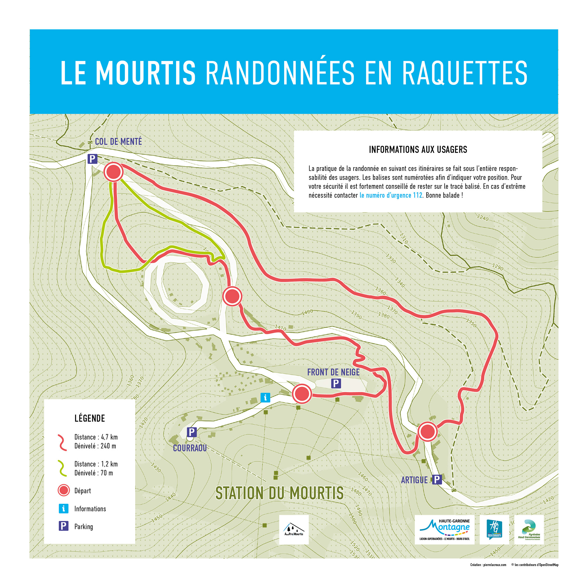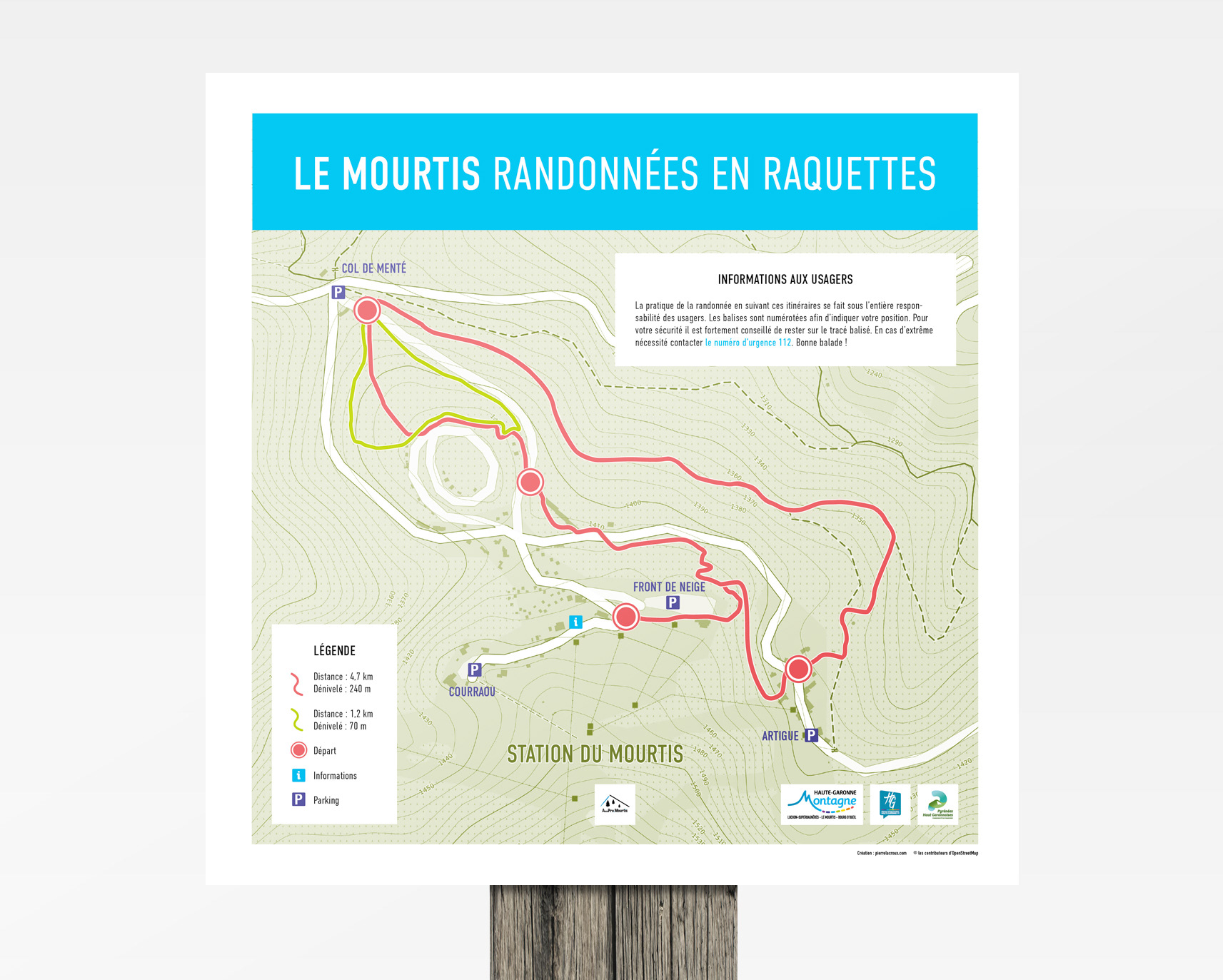 Création d'un panneau présentant les itinéraires raquettes sur la station de ski du Mourtis.