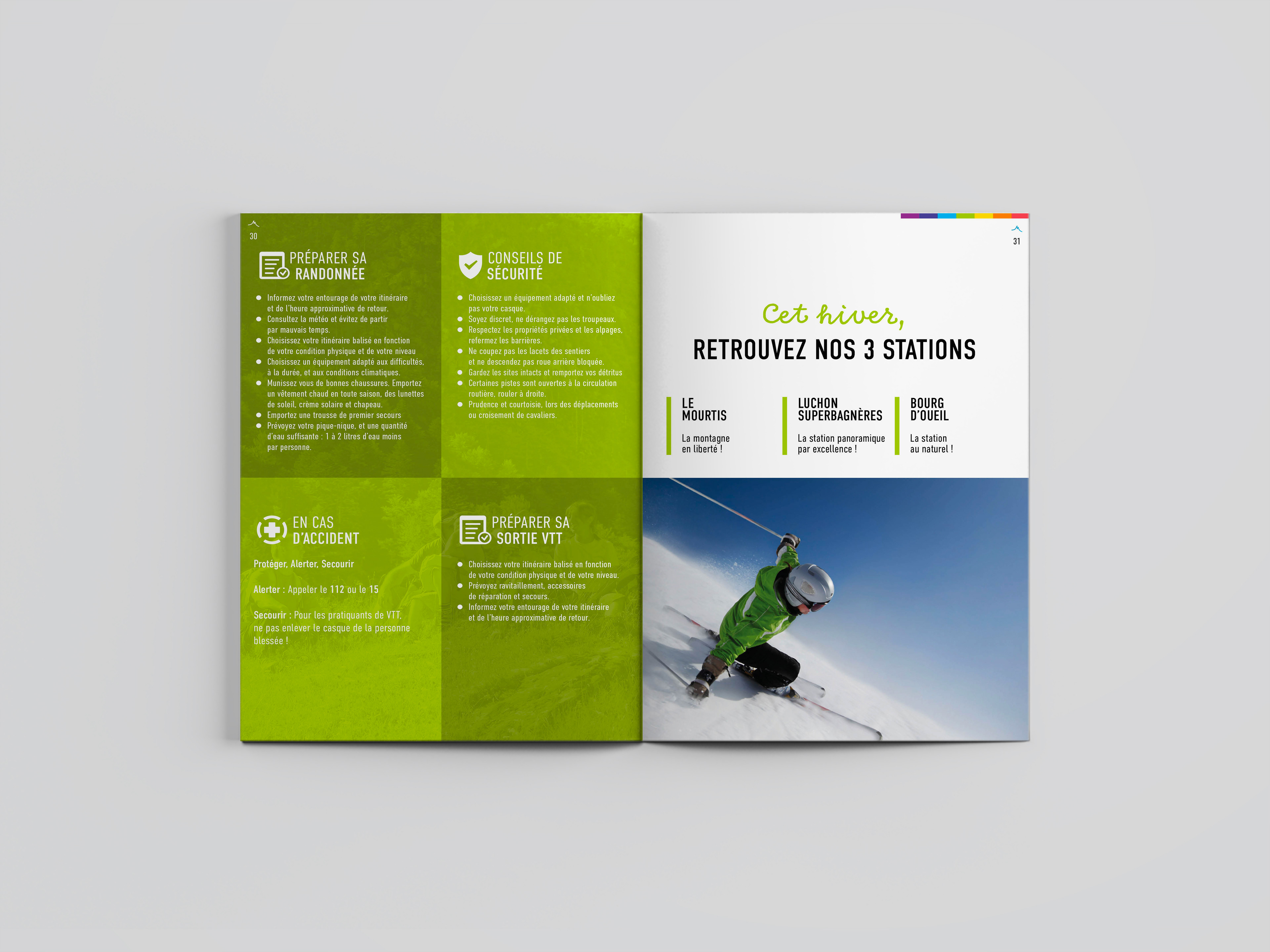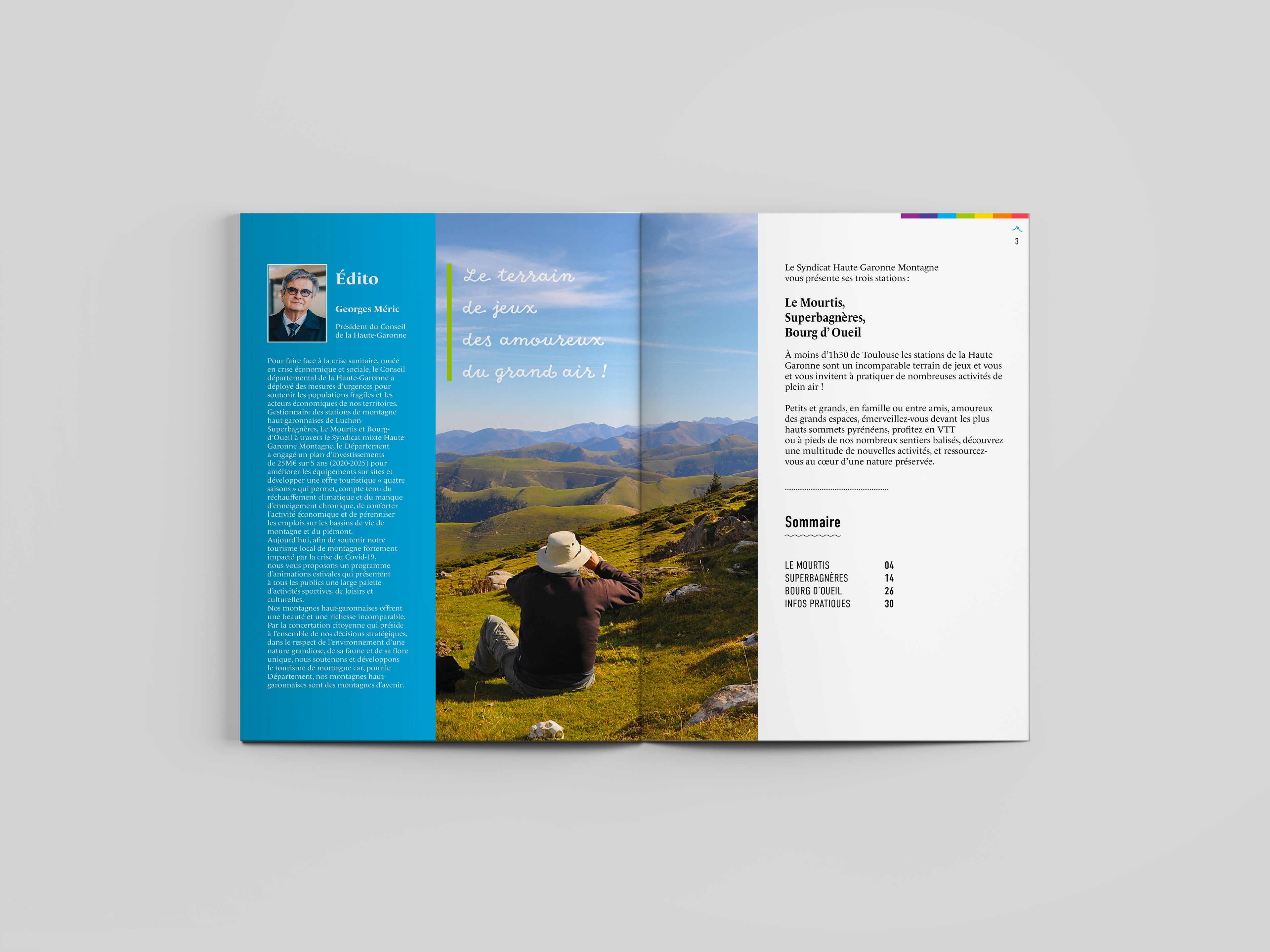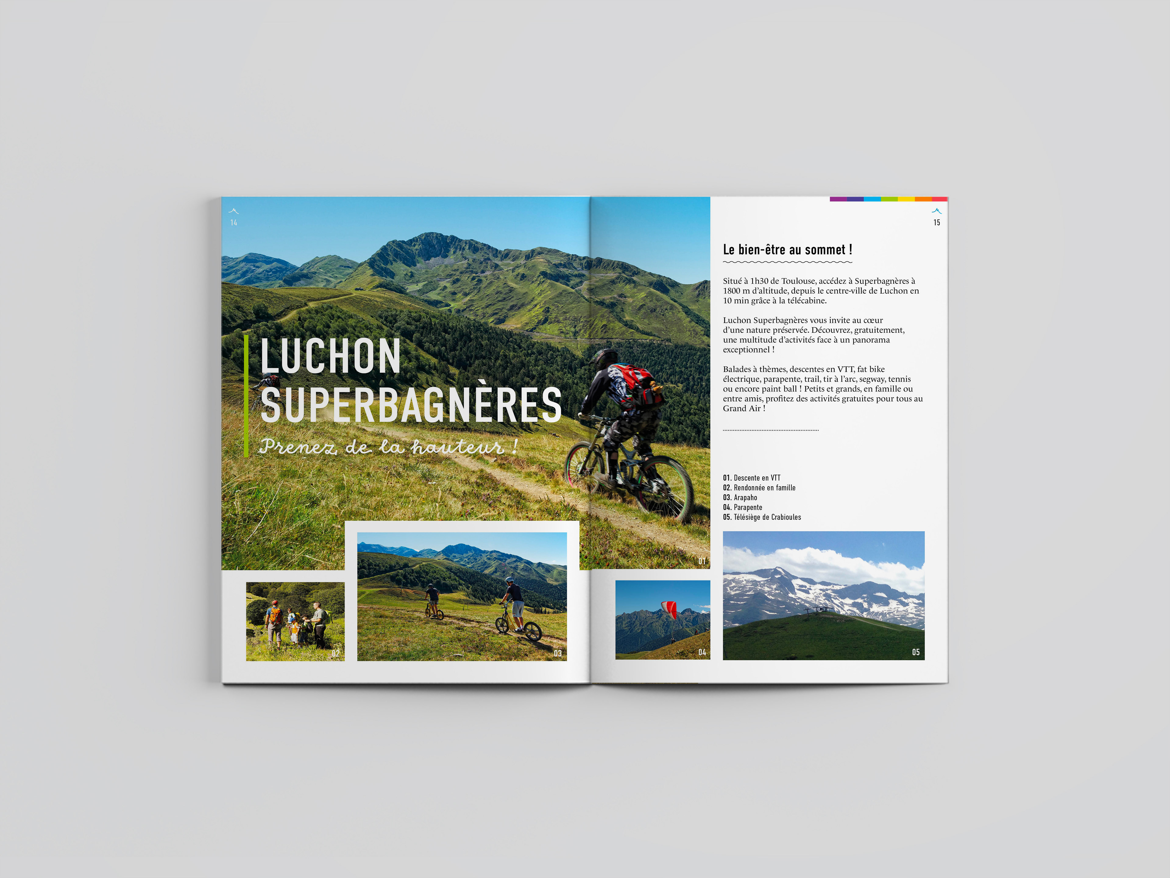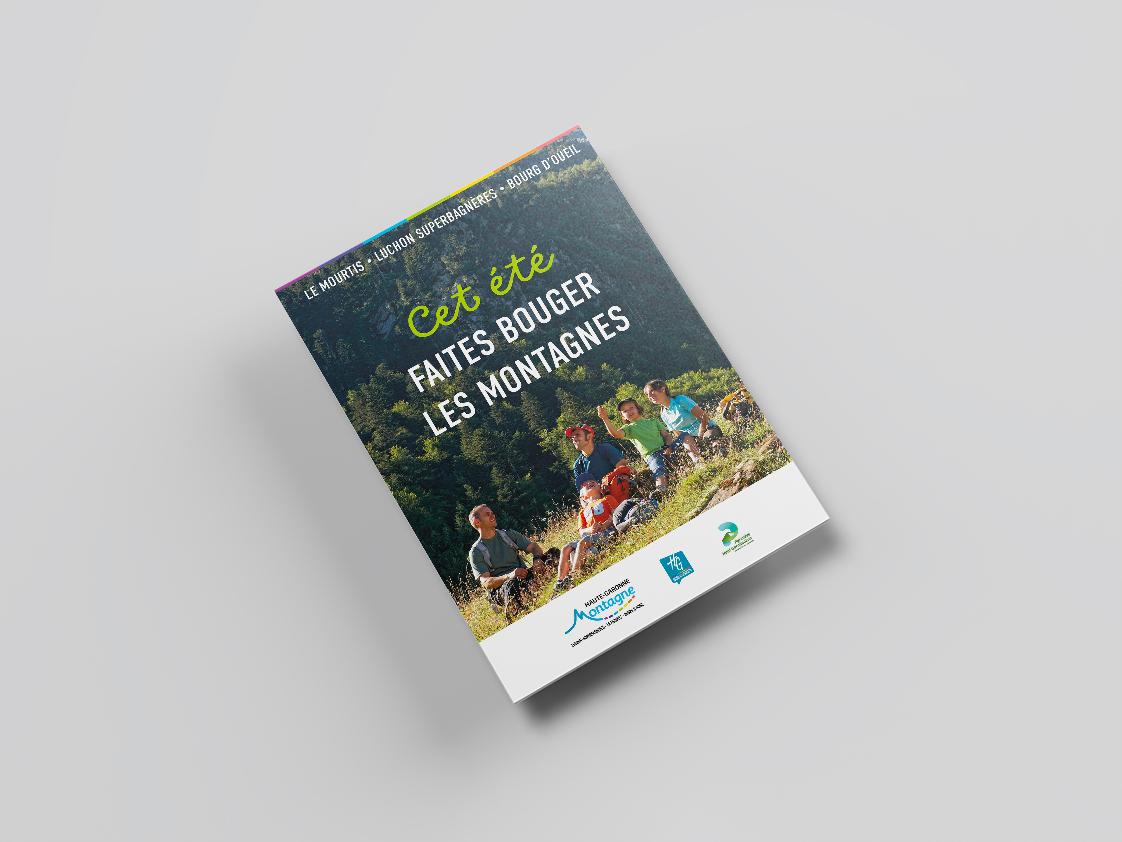 Création de la plaquette été 2020 de Haute-Garonne Montagne. 15 x 21 cm, 32 pages.