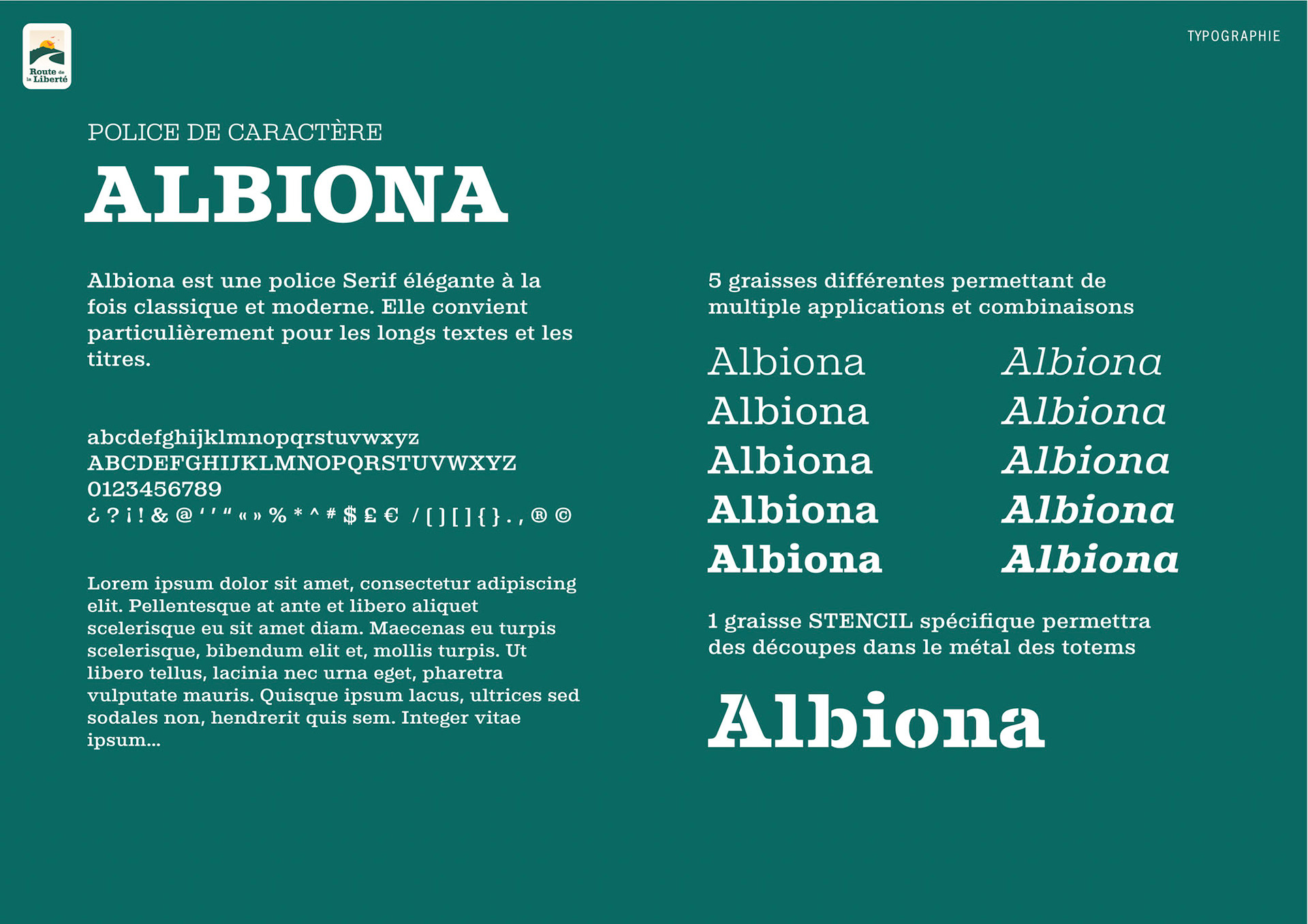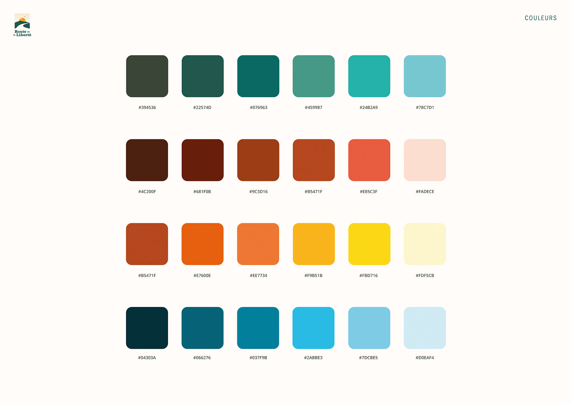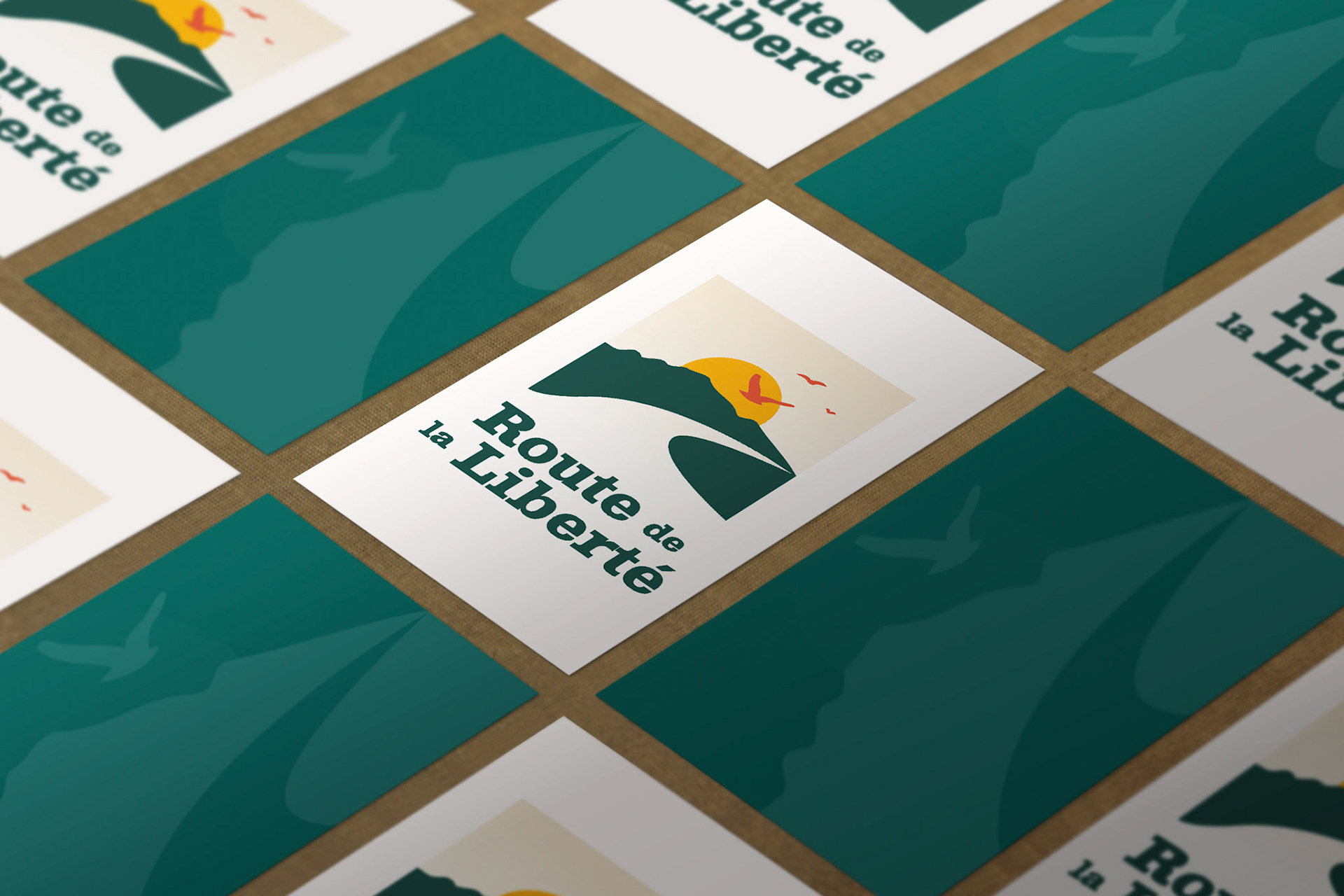 Création de l'identité graphique de la route de la liberté et 5 totems.